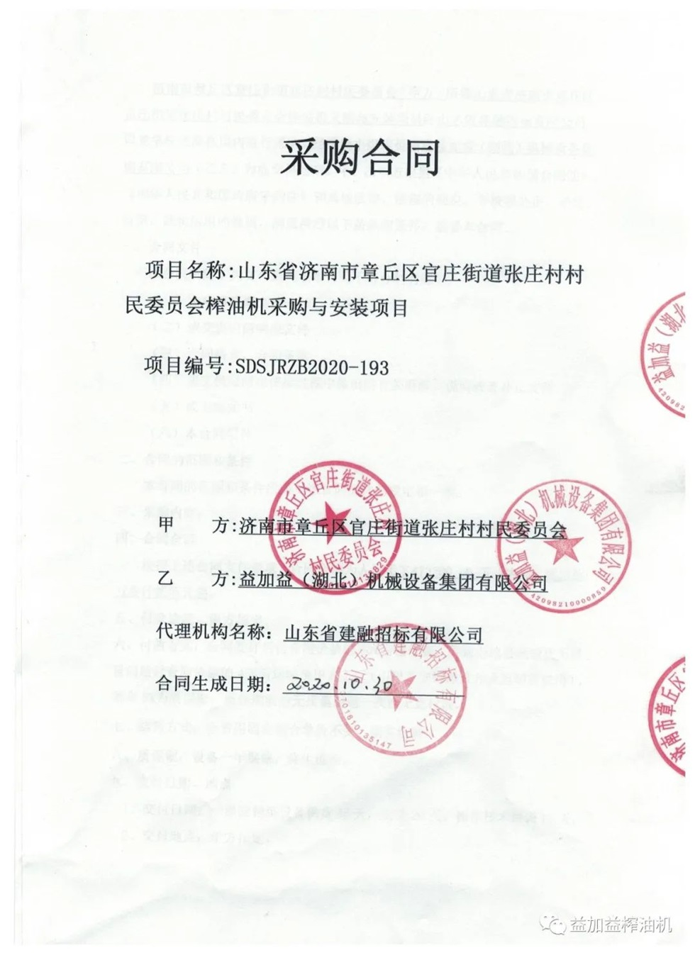 金秋益加益集團(tuán)又中標(biāo)政府采購(gòu)榨油機(jī)項(xiàng)目